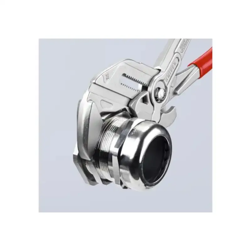 Szczypce-klucz Knipex 86 03 250 to doskonałe narzędzie do montażu i serwisu armatury, elementów chromowanych oraz złącz o różnych rozmiarach. Dzięki precyzyjnemu wykonaniu i gładkim szczękom idealnie nadają się do pracy w branży hydraulicznej, elektrycznej oraz mechanicznej.