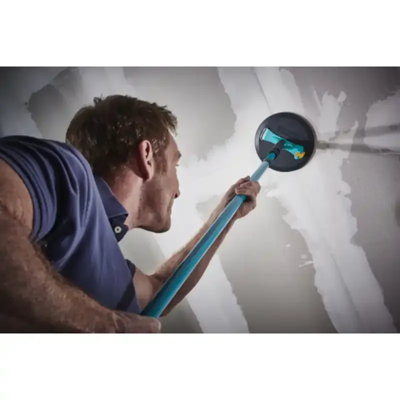 Dzięki mocowaniu na rzep zestaw umożliwia szybką wymianę siatek ściernych, co znacząco zwiększa wygodę użytkowania. Dysk można stosować zarówno ręcznie, jak i z przedłużaczem teleskopowym (nr art. 4012000), który pozwala na pracę z oddaleniem od strefy pyłu i ułatwia szlifowanie sufitów. Zestaw jest doskonałym wyborem dla profesjonalistów oraz hobbystów wykonujących prace związane z suchą zabudową.