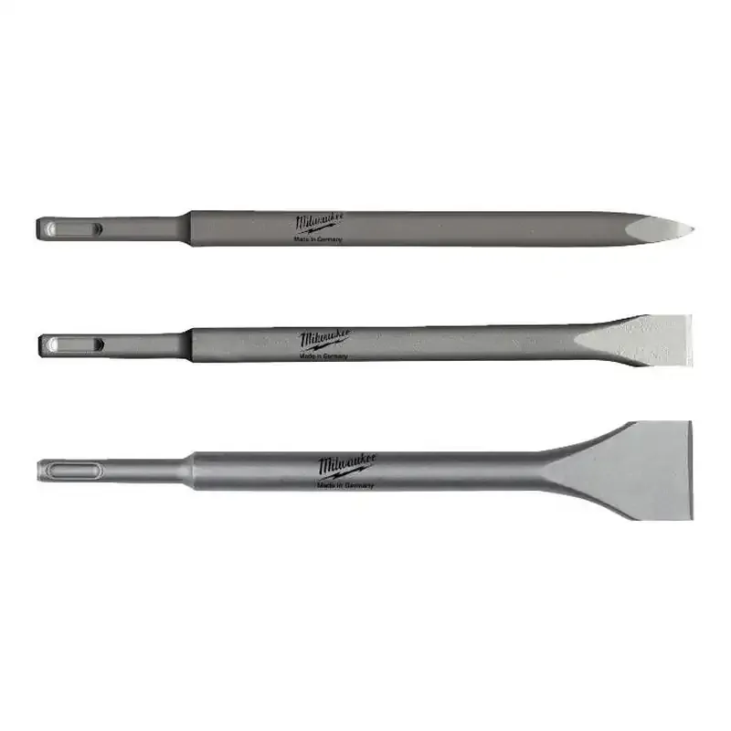 Zestaw dłut Milwaukee SDS-Plus 250 mm, zawierający dłuto szpicakowe, płaskie i szerokie. Idealne do szerokiego zakresu prac dłutowania w cegle, betonie i kamieniu.