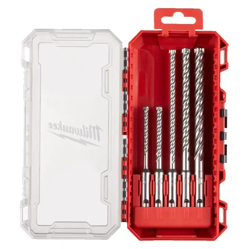 Zestaw 5 wierteł SDS+ MX4 Milwaukee (5–10 mm) do betonu, cegły i kamienia naturalnego. Wytrzymała widia, gładkie otwory i minimalne wibracje.