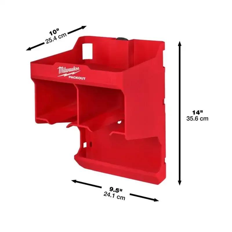 Uchwyt na wiertarki Milwaukee PACKOUT™ to element modułowego systemu przechowywania, który zapewnia wygodę i bezpieczeństwo organizacji narzędzi. Dzięki solidnej konstrukcji i przemyślanemu projektowi, uchwyt pozwala na przechowywanie do dwóch wiertarek, kluczy udarowych i innych elektronarzędzi, umożliwiając łatwy dostęp do nich w dowolnym momencie.