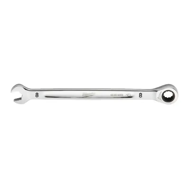 Klucz płasko-oczkowy Milwaukee Maxbite 8 mm z grzechotką 144 zębów. Wyposażony w uchwyt MAX BITE™, zaokrągloną rękojeść i chromowane wykończenie. Idealny do pracy w ciasnych przestrzeniach.