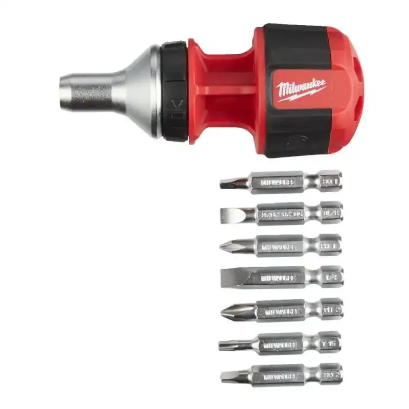 Kompaktowy multi-wkrętak Milwaukee 8 w 1 z grzechotką. Wyposażony w 6 końcówek w uchwycie rewolwerowym, metalową grzechotkę i utwardzane bity. Trwałość, precyzja i wygoda w jednym narzędziu.