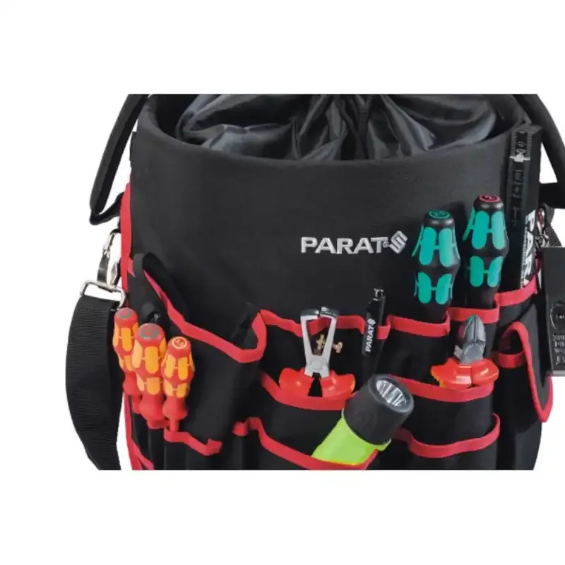 Bardzo pojemne wiadro na narzędzia firmy Parat to idealne rozwiązanie do przechowywania i transportu narzędzi, elektronarzędzi oraz sprzętu pomiarowego. Wyposażone w dużą przegrodę wewnętrzną z 12 kieszeniami oraz 37 kieszeni zewnętrznych, pozwala na wygodne uporządkowanie sprzętu. Dzięki lekkiej, a jednocześnie wytrzymałej konstrukcji z nylonu, przenoszenie narzędzi jest wygodne, a mocny uchwyt i pasek na ramię ułatwiają transport.