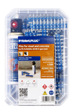 Gwoździe do betonu do osadzaka SC40 przeznaczone do prac instalacyjnych w branży elektrycznej, suchej zabudowy, wod-kan oraz HVAC