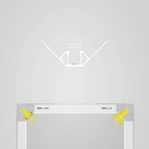 Profil narożny wewnętrzny do suchej zabudowy TBP4 do taśm LED o maksymalnej szerokości 14 mm. Płaski standardowy klosz profilu wykonany z nietłukącego, trudnopalnego poliweglanu zapewnia jednorodną, nieoślepiającą linię światła i jest dostępny w róznych wersjach. Profil może być montowany pionowo z płytami gipsowo-kartonowymi oraz, w razie potrzeby, wypełniany i tynkowany. Płyty gipsowo-kartonowe są zlicowane z profilem, dzięki czemu profil jest niewidoczny. Dostępna osłona ochronna C1S wielorazowego użytku.