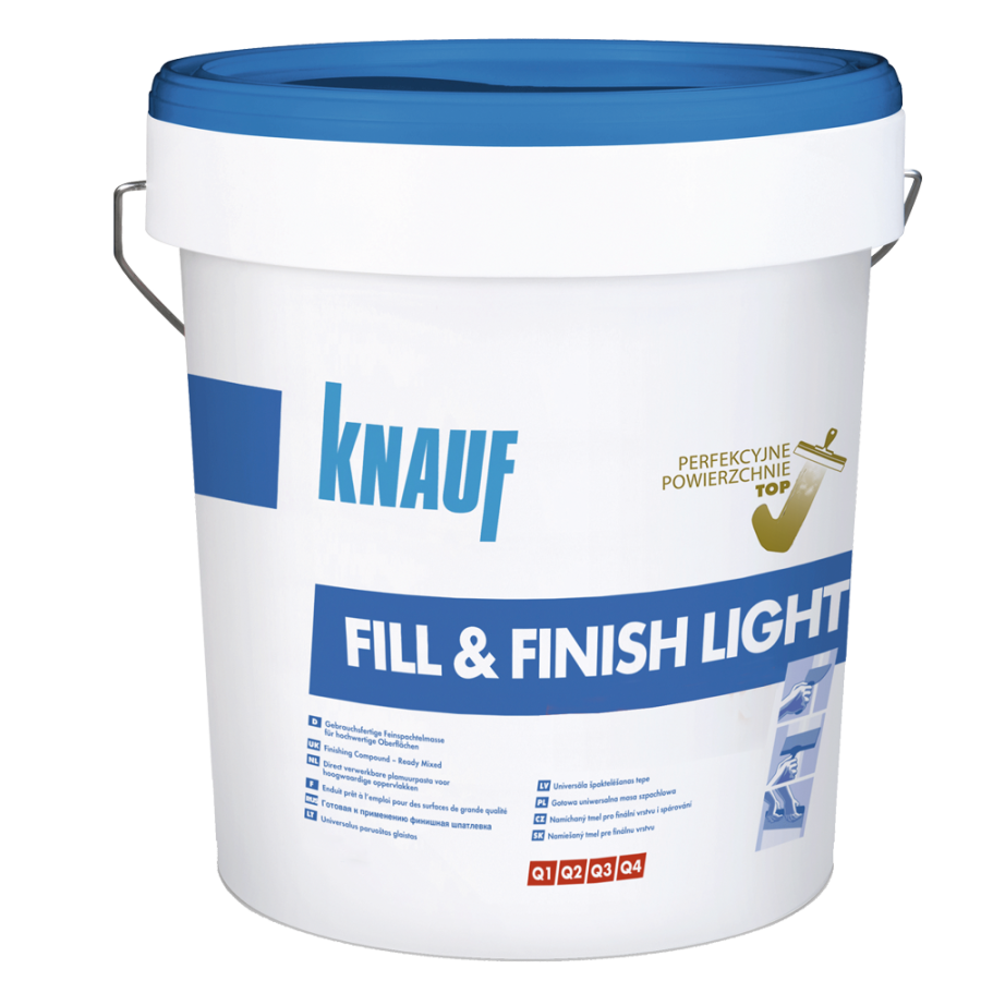 Knauf Fill&Finish Light 4kg Gotowa masa szpachlowa Do wklejania taśm papierowych na połączenia płyt G-K Do wklejania narożników Nakładanie ręczne lub maszynowe Zastosowanie we wnętrzach