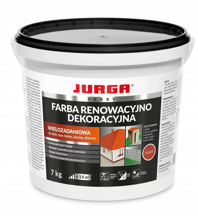 Wielozadaniowa farba renowacyjno-dekoracyjna przeznaczona do odnawiania pionowych powierzchni takich jak mury, przyziemia ścian zewnętrznych budynku, dachy, opierzenia, elementy architektury ogrodowej: altany, domki i skrzynie na narzędzia, wiaty itp. Posiada doskonałą przyczepność do różnych powierzchni, w tym: beton, tynk, papę, blachę trapezową, eternit, blachodachówkę, dachówkę cementową i ceramiczną, powłoki bitumiczne, drewno, blachę ocynkowaną, gazony. Farba posiada bardzo dobre właściwości kryjące, wysoką elastyczność oraz po wyschnięciu tworzy powłokę odporną na działanie wody oraz UV. Produkt jest łatwy w aplikacji, ekologiczny i szybkoschnący.