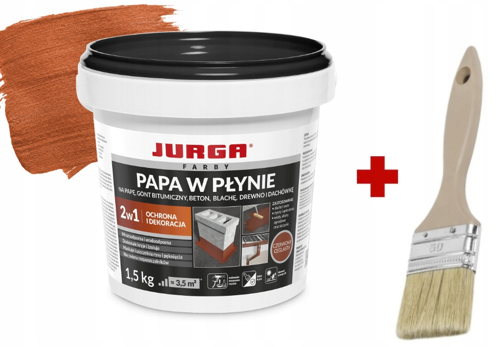 Do każdego zakupionego wiadra Papy w płynie JURGA 1,5kg w kolorze czerwonym - pędzel do nakładania gratis!