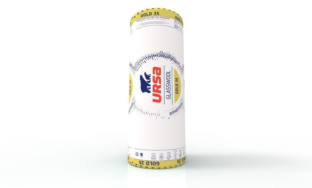 Wełna mineralna URSA DF35 Gold 035 150 mm to materiał izolacyjny do skutecznej izolacji cieplnej i akustycznej przegród budowlanych.