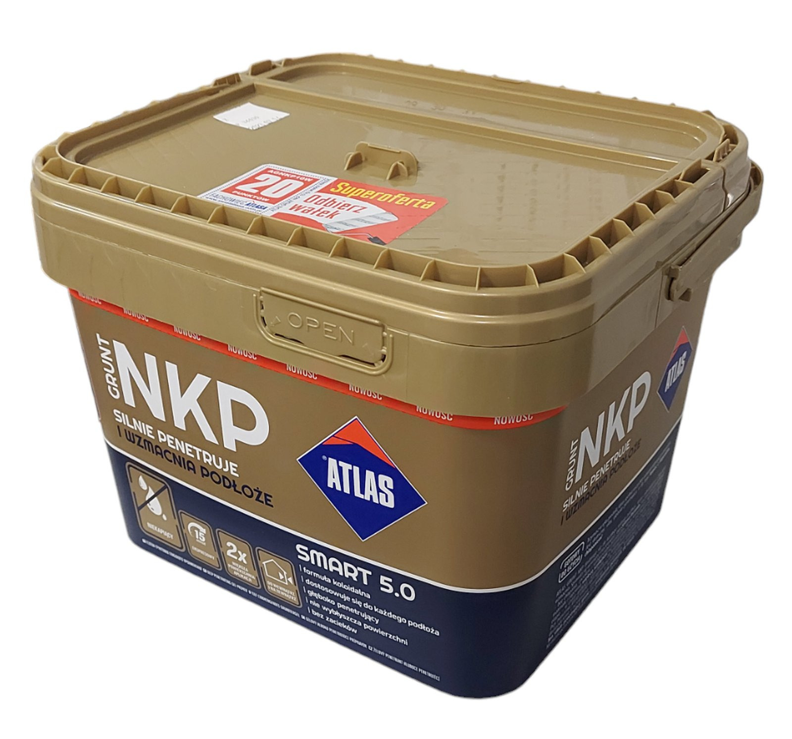 ATLAS GRUNT NKP to grunt gotowy do użycia, który silnie wzmacnia podłoże, a jednocześnie nie kapie ani nie chlapie.
