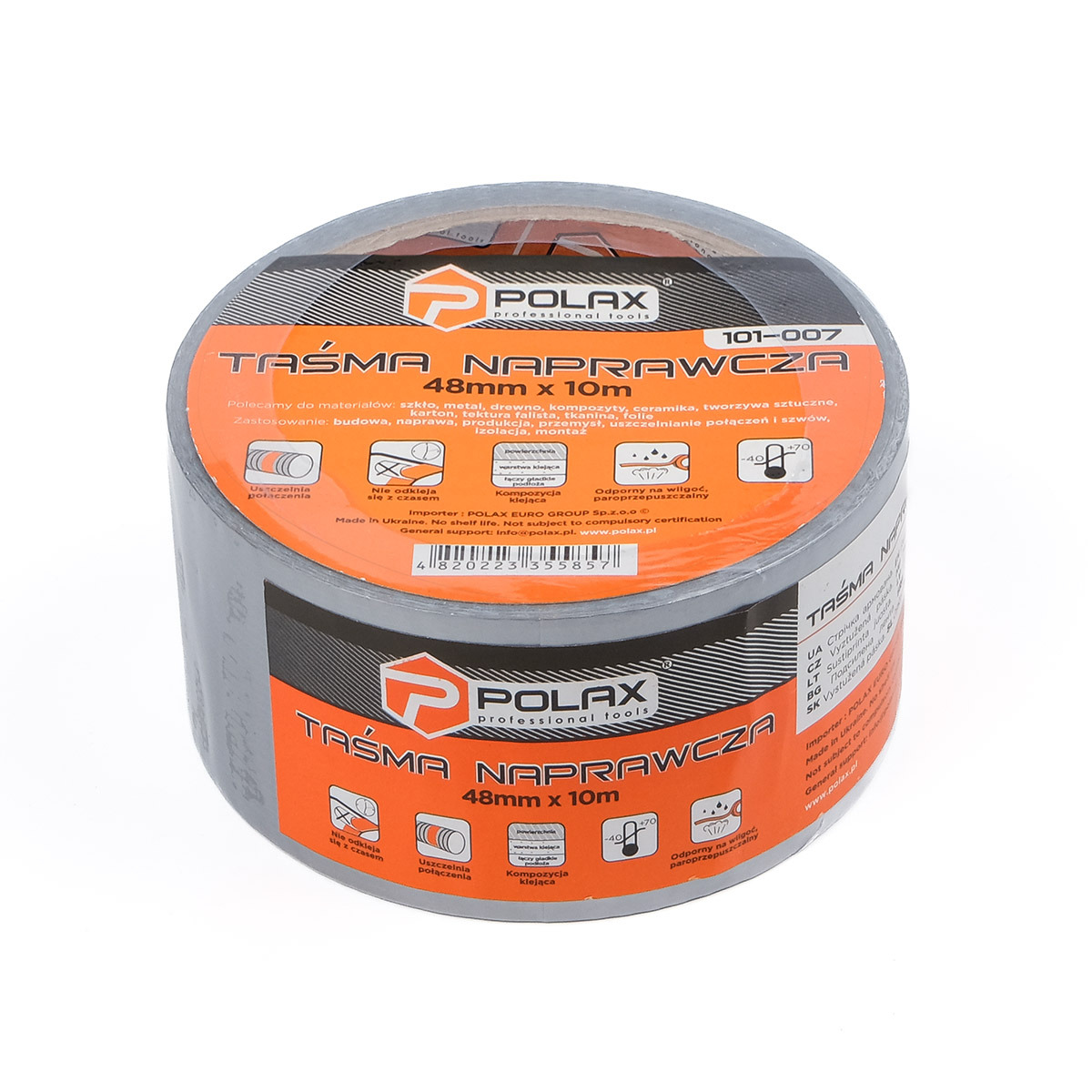 Taśma zbrojona to uniwersalny rodzaj taśmy budowlanej, charakteryzujący się zwiększoną wytrzymałością, niezawodnością, elastycznością, właściwościami izolacyjnymi i wodoodpornymi. Służy do łączenia powierzchni, uszczelniania szwów, montażu paneli, izolowania elementów elektrycznych, zamykania szczelin, łączenia rur, usuwania wycieków, a także do pakowania ładunków masowych. Uniwersalna taśma wzmacniana zwana jest także taśmą tkaninowo-polietylenową (TPL) lub taśmą techniczną. To doskonały pomocnik każdego profesjonalnego lub domowego rzemieślnika, który z pewnością znajdzie miejsce w zestawie niezbędnych narzędzi. Wysokiej jakości taśmę zbrojoną możesz kupić w sklepie internetowym z narzędziami Polax. Główną różnicą między taśmą zbrojoną a zwykłą jest taśma PCV wzmocniona włóknami tkaninowymi, pokryta specjalnym klejem i laminowana polietylenem. Wzmocnienie nie tylko wzmacnia taśmę, ale także nadaje jej trwałość. Wytrzymała taśma PCV w połączeniu z super mocnym klejem i włóknem szklanym charakteryzuje się dużą wytrzymałością, odpornością na wysokie i niskie temperatury, wilgoć oraz duże obciążenia. Rozerwanie taśmy nawet przy największych obciążeniach jest niedopuszczalne, dlatego też zaleca się stosowanie takiej taśmy do zaklejania pojemników, pudeł i paczek, gdy jest to niezbędne dla zapewnienia jak największego bezpieczeństwa. Uniwersalna budowa wzmocnionej taśmy pozwala na jej szerokie zastosowanie w budownictwie, produkcji i życiu codziennym. Najczęściej stosuje się go podczas różnych prac budowlanych i naprawczych, gdzie wymagana jest izolacja przed przenikaniem wilgoci, na przykład do łączenia rur i węży. Wzmocniona taśma jest doskonałym narzędziem do izolowania połączeń, szwów i połączeń rur. Mechanicy często używają tego materiału do naprawy samochodów, a elektrycy mogą zastąpić nim taśmę elektryczną podczas instalowania przewodów elektrycznych. Z taśmą można pracować w różnych temperaturach. Aby połączenie było jak najtrwalsze, taśmę należy nawinąć zakładkowo na wcześniej oczyszczoną powierzchnię. Taśma klejąca wzmocniona Polax, 50 mm x 10 m (101-007)