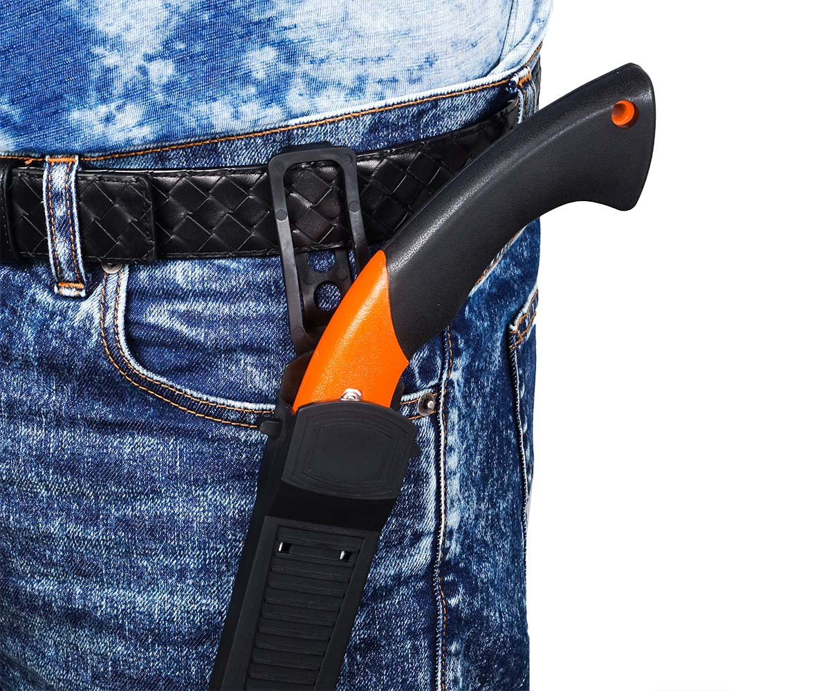 Wygodna rękojeść z tworzywa sztucznego zapewnia pewny chwyt i wygodę podczas pracy, redukując zmęczenie dłoni. Do piły dołączone jest etui ochronne, które nie tylko zapewnia bezpieczne przechowywanie, ale także chroni ostrze przed uszkodzeniami i utrzymuje jego ostrość.