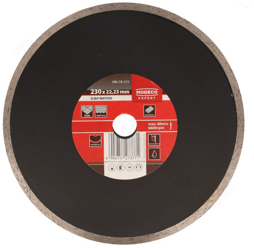 MODECO Ściernica diamentowa pełna 230 mm MN-78-215 to wysokiej jakości tarcza diamentowa przeznaczona do precyzyjnego i czystego cięcia twardych materiałów wykończeniowych. Dzięki pełnemu, ciągłemu wieńcowi diamentowemu zapewnia gładkie, równe cięcia bez wyszczerbień, co ma kluczowe znaczenie przy pracach wymagających estetycznego wykończenia.