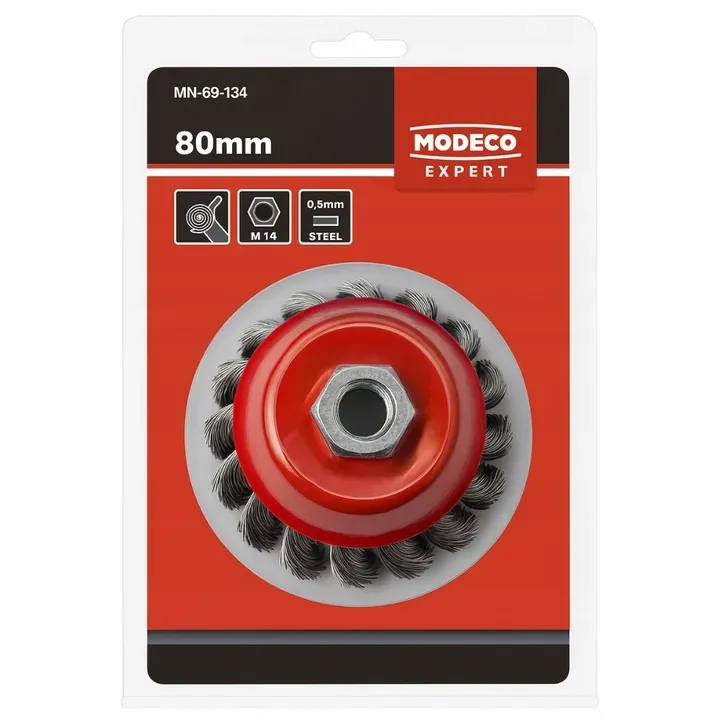 Szczotka doczołowa Modeco MN‑69‑134 o średnicy 80 mm to solidne narzędzie przeznaczone do czyszczenia i usuwania rdzy, farby oraz zabrudzeń z metalu i innych twardych powierzchni. Stalowe włosie zapewnia agresywne usuwanie nalotów nawet z trudno dostępnych miejsc, a montaż do szlifierki kątowej pozwala szybko i efektywnie przygotować powierzchnię do dalszej obróbki. Produkt sprawdza się zarówno w warsztacie, jak i na budowie oraz przy pracach renowacyjnych.