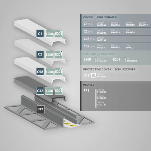 Zaprojektowany dla koncepcji płytek! Środkowy profil do płytek FP1 jest przeznaczony do elastycznych taśm LED o maksymalnej szerokości 12 mm. Posiada duże skrzydła po obu stronach (o szerokosci 20 mm), które wypełnia się klejem do płytek i integruje z koncepcją układania płytek. Płytki sa przyklejane do skrzydełek. Ze względu na dużą powierzchnię, system profili bardzo dobrze odprowadza generowane ciepło.