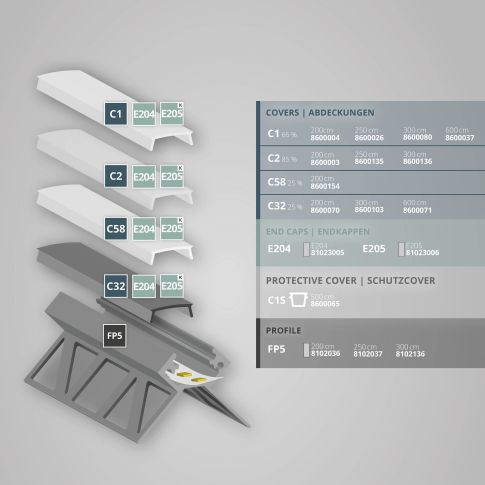 Zaprojektowany dla koncepcji płytek! Zewnętrzny narożnik profilu do płytek LED FP5 jest przeznaczony do taśm elastycznych LED o maksymalnej szerokości 12 mm. Wypełnia się go klejem do płytek na tylnych, dużych skrzydłach (o szerokości 20 mm) na zewnątrz pionowych narożników pomieszczenia i zintegrowany z koncepcją układania płytek.