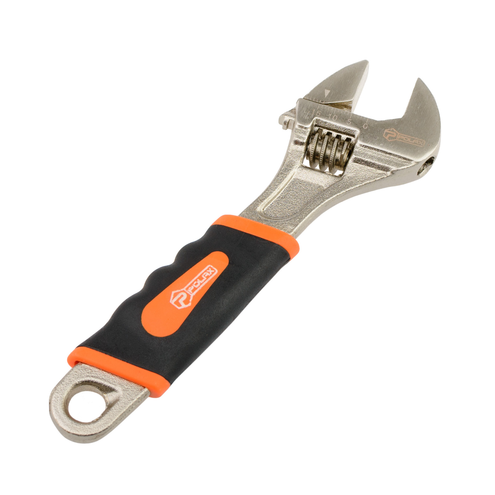 Klucz nastawny z gumową rączką Polax 150 mm (25-017) to klucz nastawny o zmiennym rozmiarze. Jest przeznaczony do toczenia nakrętek, śrub i innych części, co czyni go bardzo wszechstronnym narzędziem. Klucz ten jest rodzajem klucza płaskiego z regulowanymi szczękami, co pozwala na łatwą zmianę jego rozmiaru i dostosowanie go do różnych zadań.