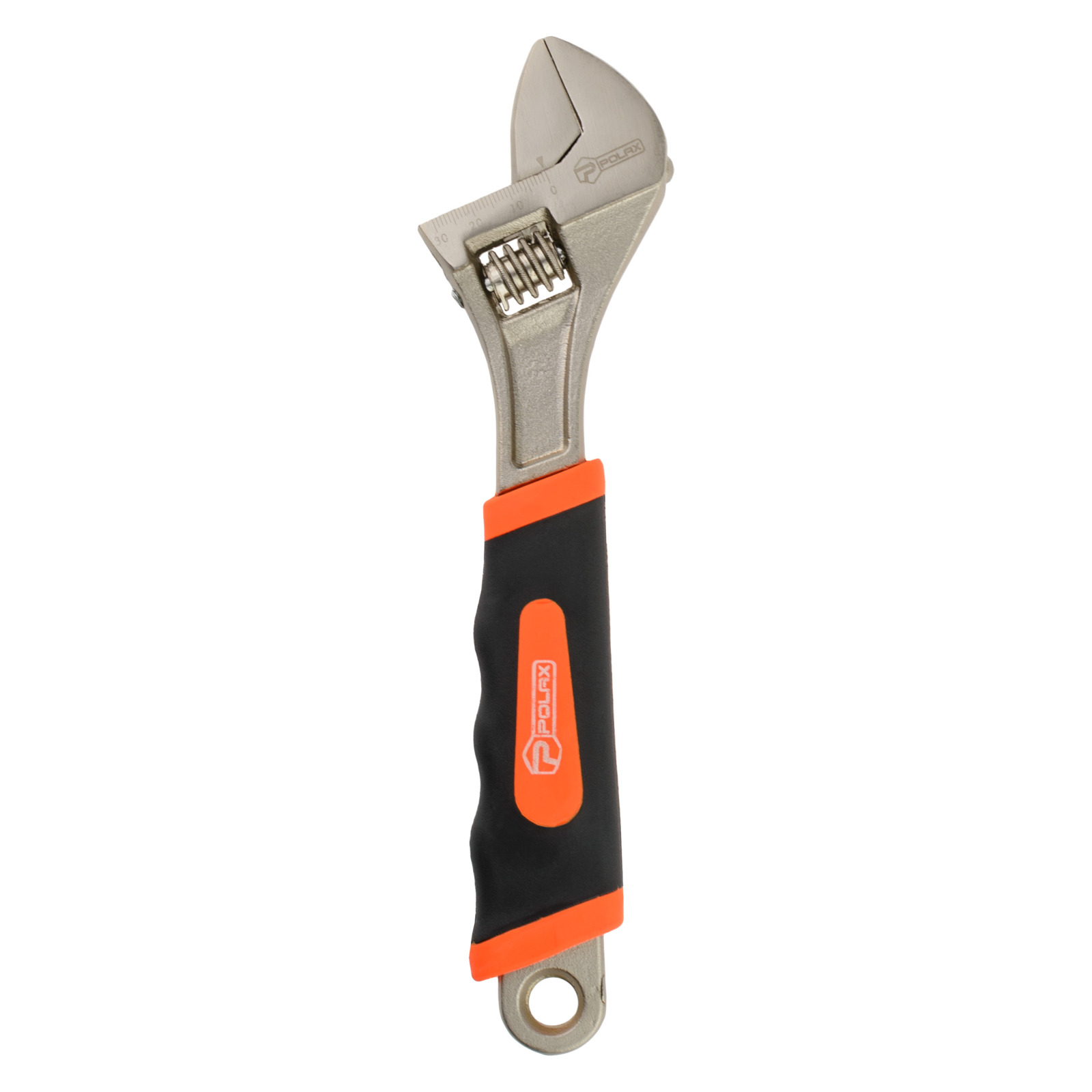 Klucz nastawny z gumową rączką Polax 250 mm (25-019) to klucz nastawny o zmiennym rozmiarze. Jest przeznaczony do toczenia nakrętek, śrub i innych części, co czyni go bardzo wszechstronnym narzędziem. Klucz ten jest rodzajem klucza płaskiego z regulowanymi szczękami, co pozwala na łatwą zmianę jego rozmiaru i dostosowanie go do różnych zadań.