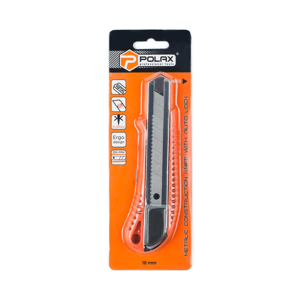 Nóż o konstrukcji metalowej Polax z wysuwanym ostrzem, auto-lock 18 mm (23-005)