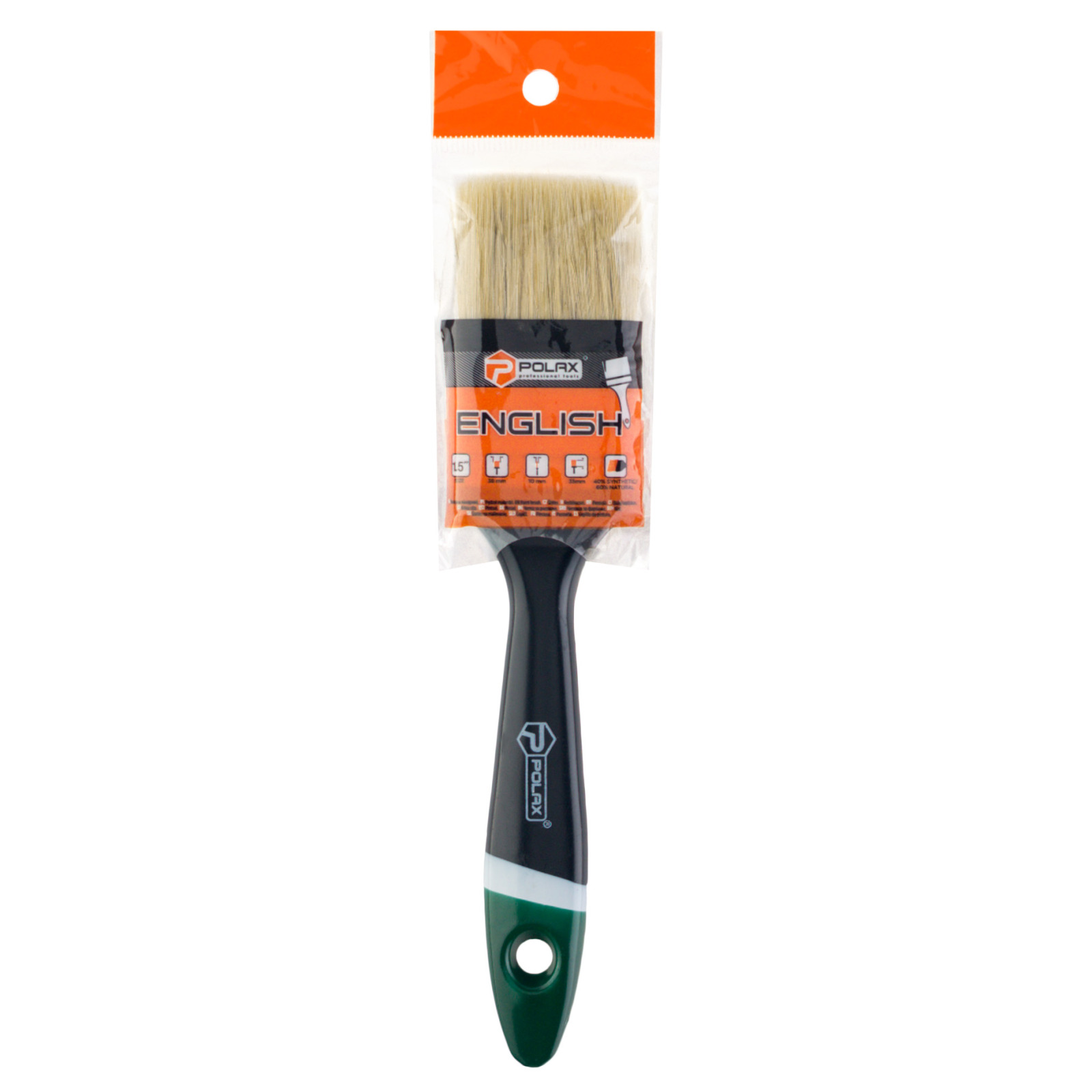 Pędzel fletowy Polax 1,5" typ "angielski" profesjonalny, włosie mieszane, rączka plastikowa (10-002)