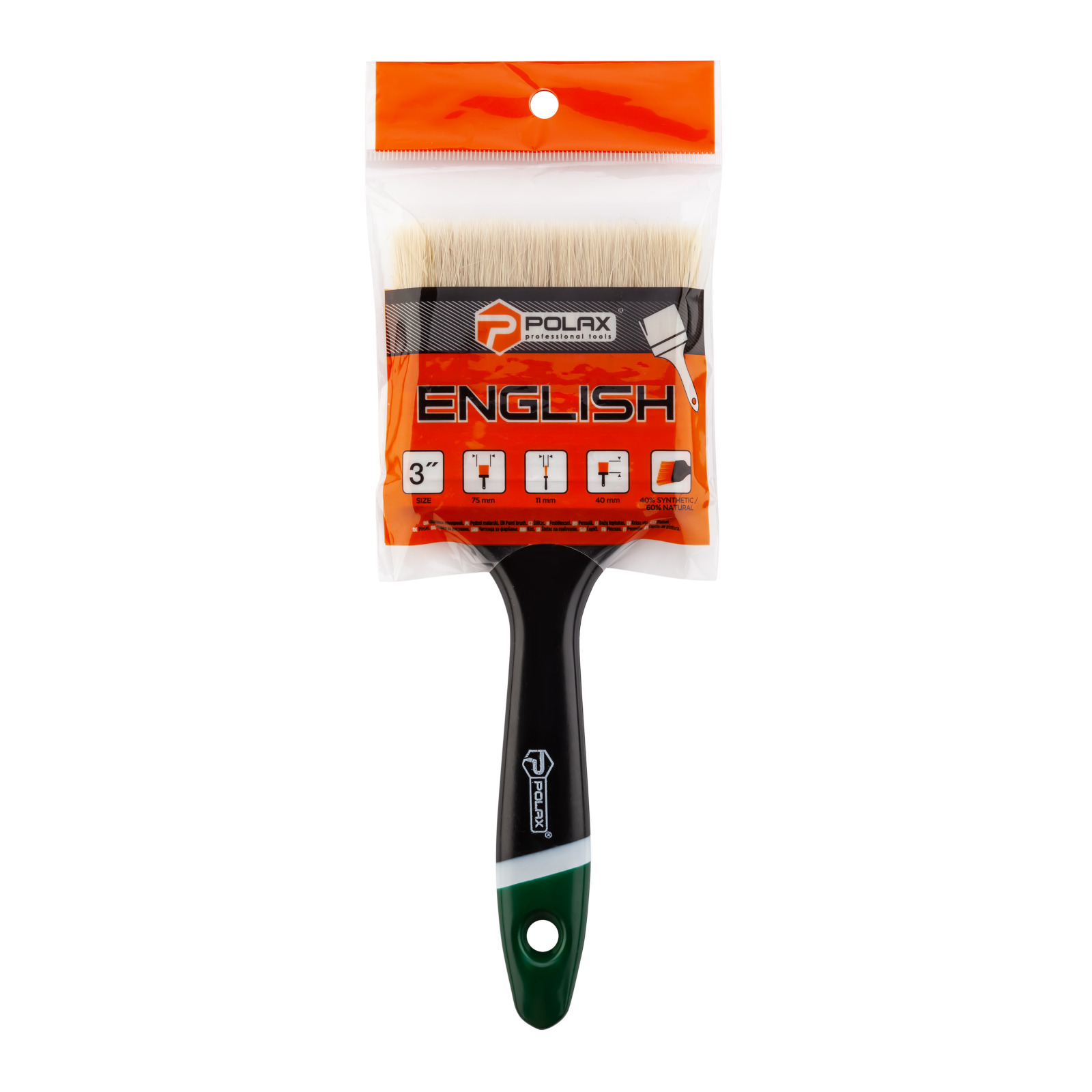 Polax pędzel fletowy 3" typ "angielski" profesjonalny, włosie mieszane, rączka plastikowa (10-005)