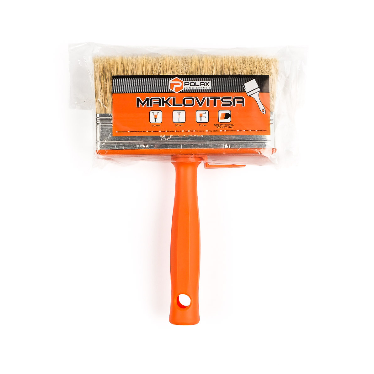 Profesjonalny pędzel Polax to idealne narzędzie do szybkiego malowania dużych powierzchni. Pędzel ma szerokość 150 mm, grubość 50 mm i włosie o długości 50 mm. Wykonany jest z wysokiej jakości mieszanki 50% syntetycznego i 50% naturalnego włosia, co zapewnia doskonałą absorpcję farby i równomierną aplikację.