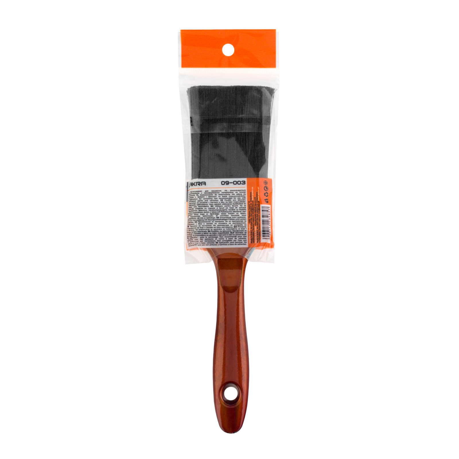 Pędzel wyposażony jest w lekką, plastikową rączkę z wygodnym otworem do zawieszenia, dzięki czemu przechowywanie i dostęp do narzędzia są łatwe. Bandaż wykonany ze stali nierdzewnej gwarantuje trwałość i odporność na rdzę. Włosie pędzla zabezpieczone jest indywidualnym opakowaniem wykonanym z wytrzymałego polietylenu, co chroni je przed brudem, kurzem i uszkodzeniami mechanicznymi, a także ułatwia proces pierwszego użycia.