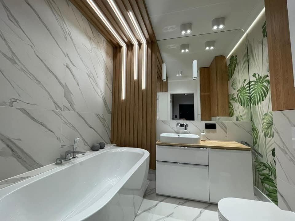 Łazienki (kompleksowe wykonawstwo, montaż urządzeń i armatury, ścianki)