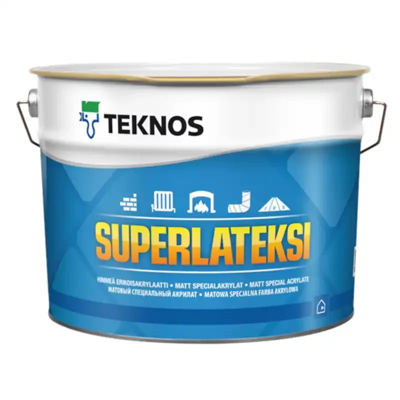 SUPERLATEKSI to wysokiej jakości matowa farba lateksowa akrylowa, przeznaczona do wszechstronnego stosowania w suchych pomieszczeniach wewnętrznych. Charakteryzuje się doskonałą przyczepnością, właściwościami poziomującymi, odpornością na wysoką temperaturę oraz zmywalnością (klasa 1 zgodnie z EN 13300). Farba może być stosowana na różnorodne podłoża, w tym powierzchnie betonowe, drewniane, metalowe i pokryte farbami olejowymi.