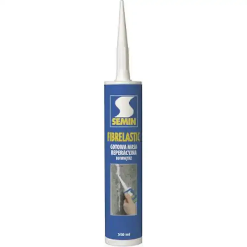 SEMIN FIBRELASTIC – Elastyczna masa reperacyjna z włóknem szklanym 310ml Elastyczna masa szpachlowa z żywicą i włóknem szklanym, idealna do napraw wewnętrznych i zewnętrznych. Kolor: jasnoszary. Wydajność: ok. 1,3 kg/m²/mm.