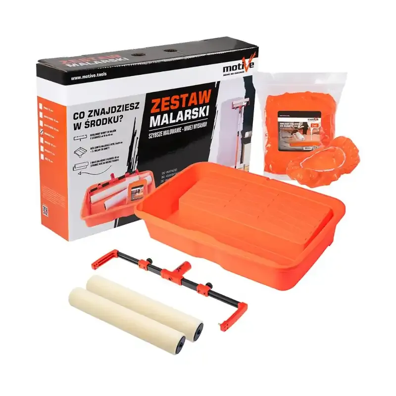 Zestaw malarski marki Motive to wszechstronny komplet narzędzi, który ułatwi malowanie dużych powierzchni. Dzięki wysokiej jakości wałkom z moherowym runem, regulowanemu uchwytowi oraz praktycznej kuwecie z wkładami foliowymi, zestaw jest idealnym rozwiązaniem zarówno dla profesjonalistów, jak i domowych majsterkowiczów.