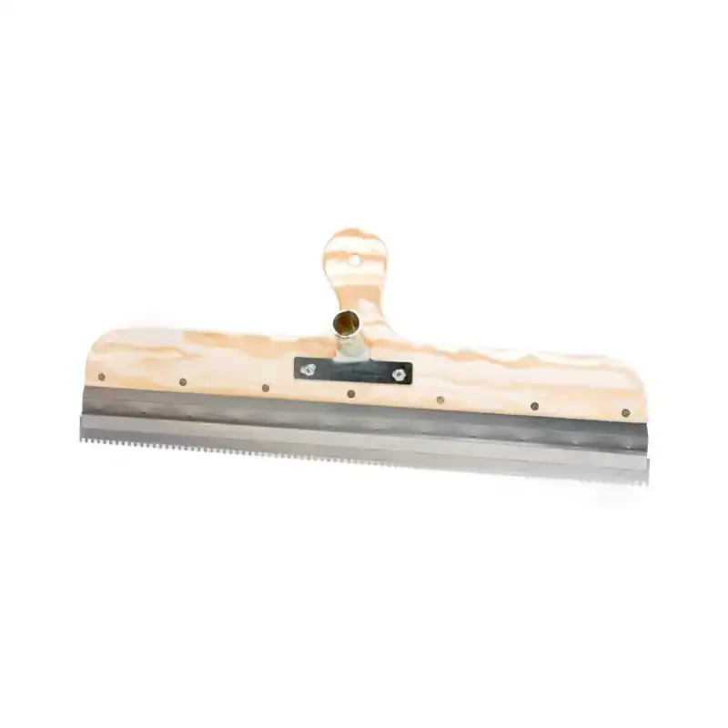 Profesjonalna szpachla do rozprowadzania kleju, wykonana z najwyższej jakości kwasoodpornej stali nierdzewnej, zaprojektowana z myślą o precyzyjnych i wymagających pracach glazurniczych. Uchwyt wykonany z profilowanej sklejki drewnianej zapewnia wygodę i pewność uchwytu nawet podczas długotrwałej pracy.