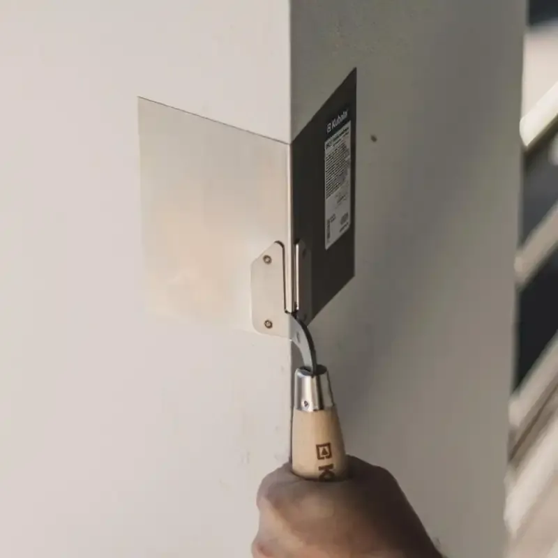 Profesjonalna kielnia przeznaczona do wykonywania gładzi w narożnikach zewnętrznych oraz zatapiania narożników aluminiowych. Narzędzie wykonane z jednego kawałka sprężystej blachy nierdzewnej o grubości 0,5 mm, dzięki czemu jest trwałe i precyzyjne. Kąt rozwarcia mniejszy niż 90 stopni zapewnia idealne dopasowanie do narożników zewnętrznych. Zaokrąglone rogi eliminują ryzyko powstawania rys, a ergonomiczny uchwyt z drewna bukowego, woskowanego, gwarantuje wygodę podczas pracy.