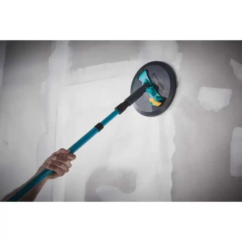 Dzięki mocowaniu na rzep zestaw umożliwia szybką wymianę siatek ściernych, co znacząco zwiększa wygodę użytkowania. Dysk można stosować zarówno ręcznie, jak i z przedłużaczem teleskopowym (nr art. 4012000), który pozwala na pracę z oddaleniem od strefy pyłu i ułatwia szlifowanie sufitów. Zestaw jest doskonałym wyborem dla profesjonalistów oraz hobbystów wykonujących prace związane z suchą zabudową.