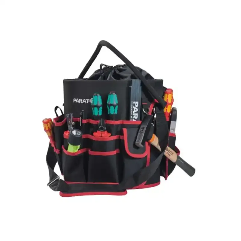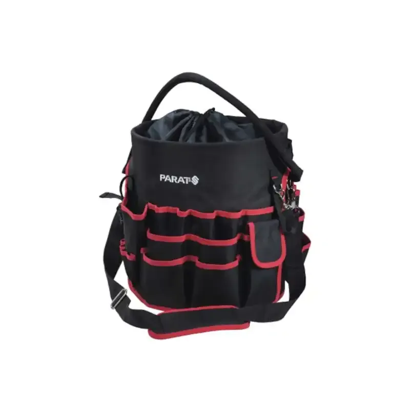Bardzo pojemne wiadro na narzędzia firmy Parat to idealne rozwiązanie do przechowywania i transportu narzędzi, elektronarzędzi oraz sprzętu pomiarowego. Wyposażone w dużą przegrodę wewnętrzną z 12 kieszeniami oraz 37 kieszeni zewnętrznych, pozwala na wygodne uporządkowanie sprzętu. Dzięki lekkiej, a jednocześnie wytrzymałej konstrukcji z nylonu, przenoszenie narzędzi jest wygodne, a mocny uchwyt i pasek na ramię ułatwiają transport.