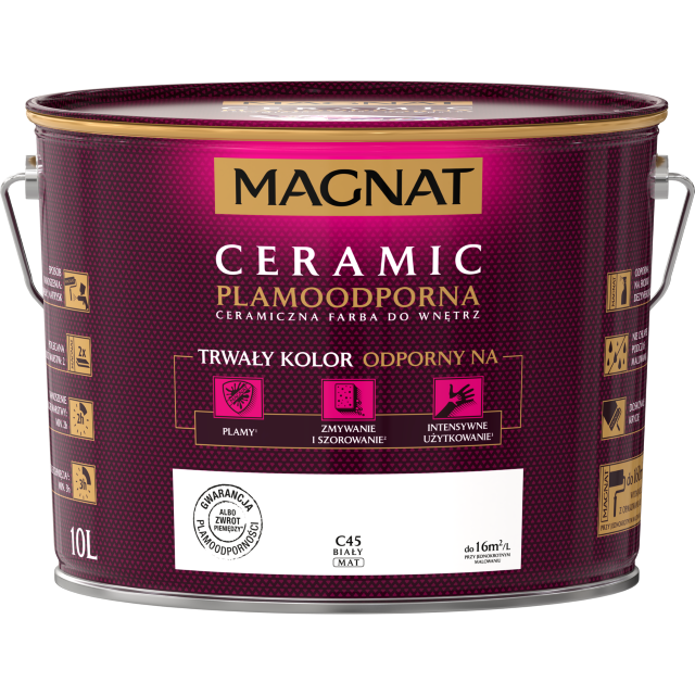 Magnat Ceramic CS 3G to farba trzeciej generacji, stworzona przy użyciu innowacyjnej technologii CERAMIC SYSTEM, bazującej na ceramicznych komponentach oraz wysokiej jakości żywicach i pigmentach. Dzięki temu produkt łączy trwałość, odporność i estetykę wykończenia, a jednocześnie zapewnia wyjątkowe parametry użytkowe.