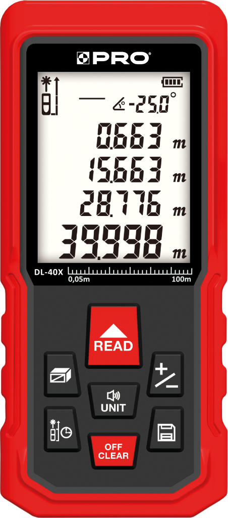 Dalmierz laserowy PRO DL‑40X to kompaktowe narzędzie pomiarowe do określania odległości z dokładnością i dużą szybkością.