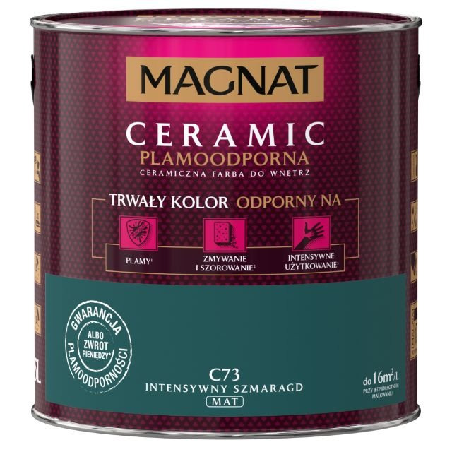 Magnat Ceramic CS 3G to farba trzeciej generacji, stworzona przy użyciu innowacyjnej technologii CERAMIC SYSTEM, bazującej na ceramicznych komponentach oraz wysokiej jakości żywicach i pigmentach. Dzięki temu produkt łączy trwałość, odporność i estetykę wykończenia, a jednocześnie zapewnia wyjątkowe parametry użytkowe.