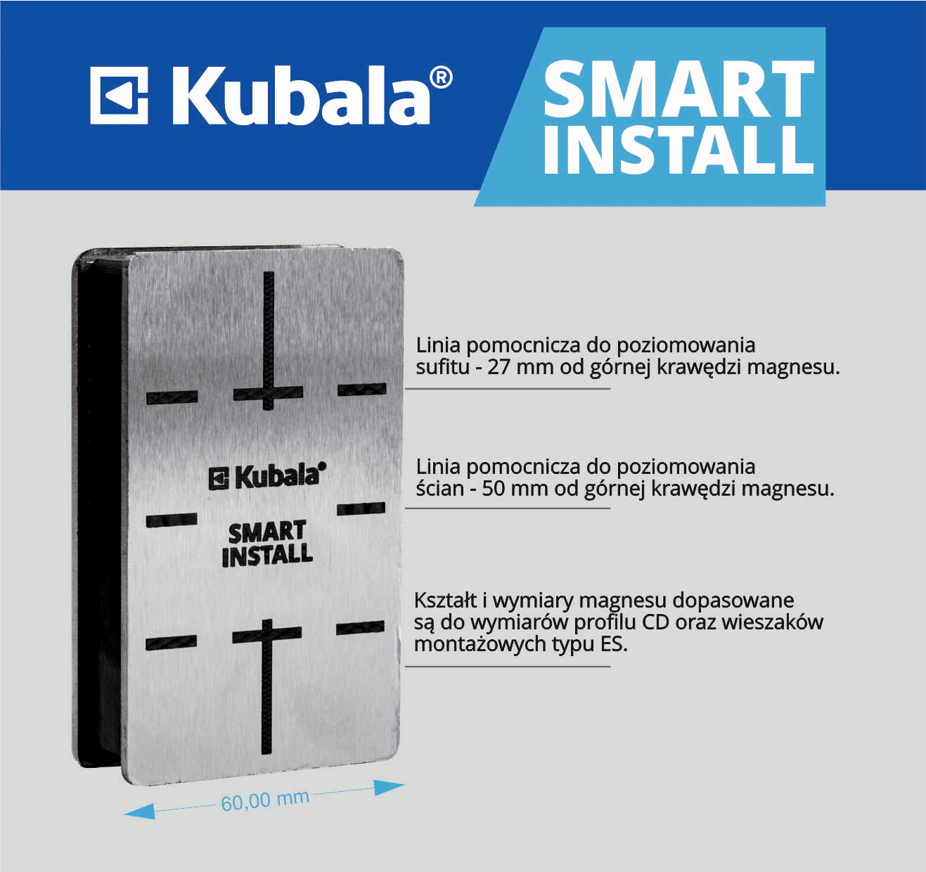 - Linia pomocnicza do poziomowania sufitu – 27 mm od górnej krawędzi magnesu.