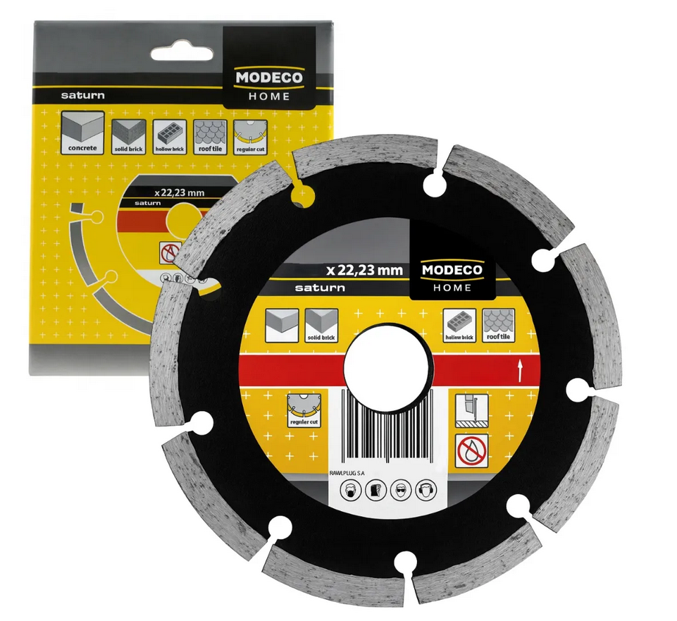 MODECO Ściernica diamentowa segmentowa 230 mm SATURN MN-78-105 to profesjonalna tarcza diamentowa przeznaczona do ciężkich prac budowlanych i remontowych. Segmentowa krawędź robocza z wysokiej jakości ziarnem diamentowym zapewnia szybkie, agresywne i wydajne cięcie twardych materiałów mineralnych.