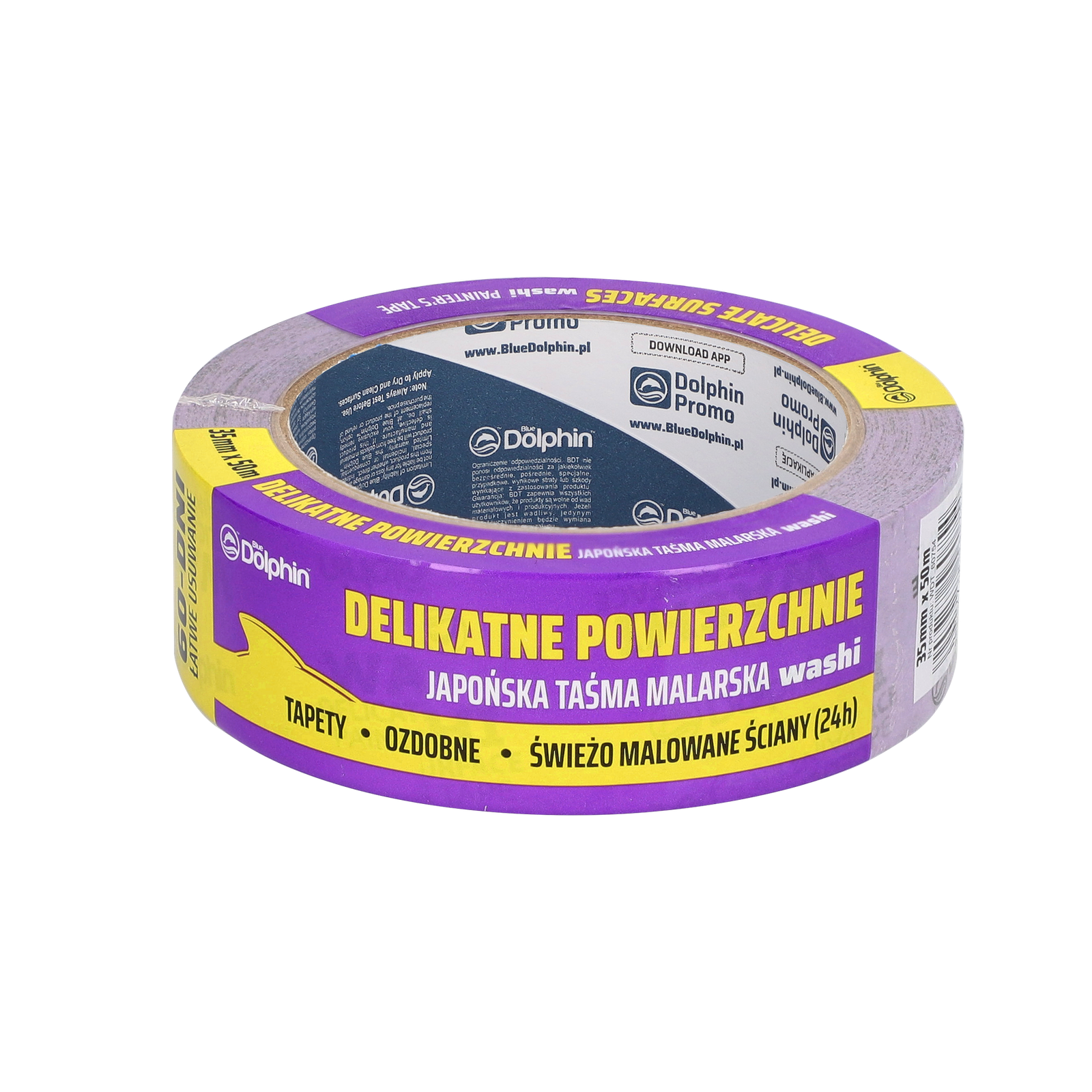 Taśma DOLPHIN washi o szerokości 35 mm i długości 50 m przeznaczona jest do zabezpieczania delikatnych powierzchni podczas malowania i prac wykończeniowych. Dzięki specjalnemu materiałowi washi taśma trzyma się pewnie, a jednocześnie schodzi czysto i bez uszkodzeń, nawet po 60 dniach aplikacji. Produkt pozwala precyzyjnie wyznaczyć krawędzie malarskie i chronić framugi, listwy, gładkie ściany czy tapety przed zabrudzeniem.