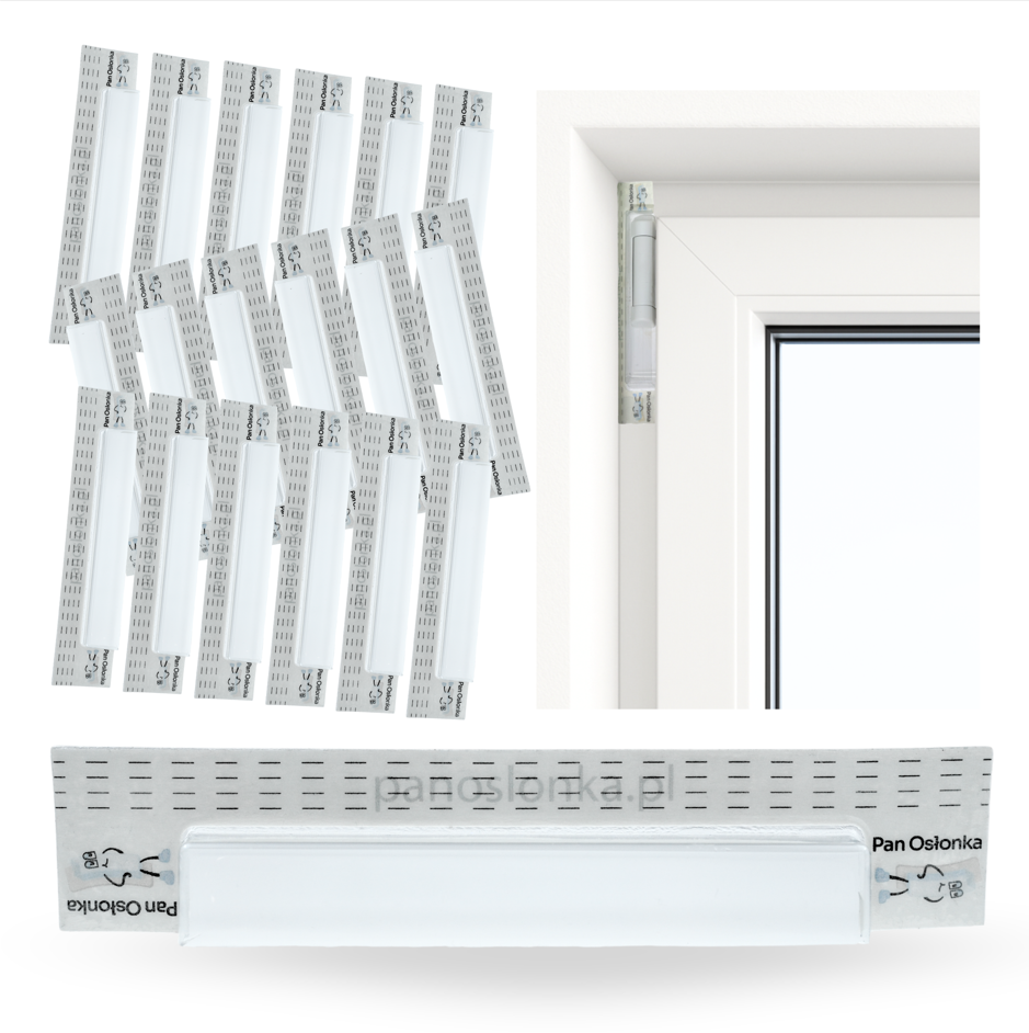 Pan Osłonka® to polski produkt, który ułatwia zabezpieczanie zawiasów i trudno dostępnych szczelin pomiędzy ościeżnicą a szpaletą okienną.