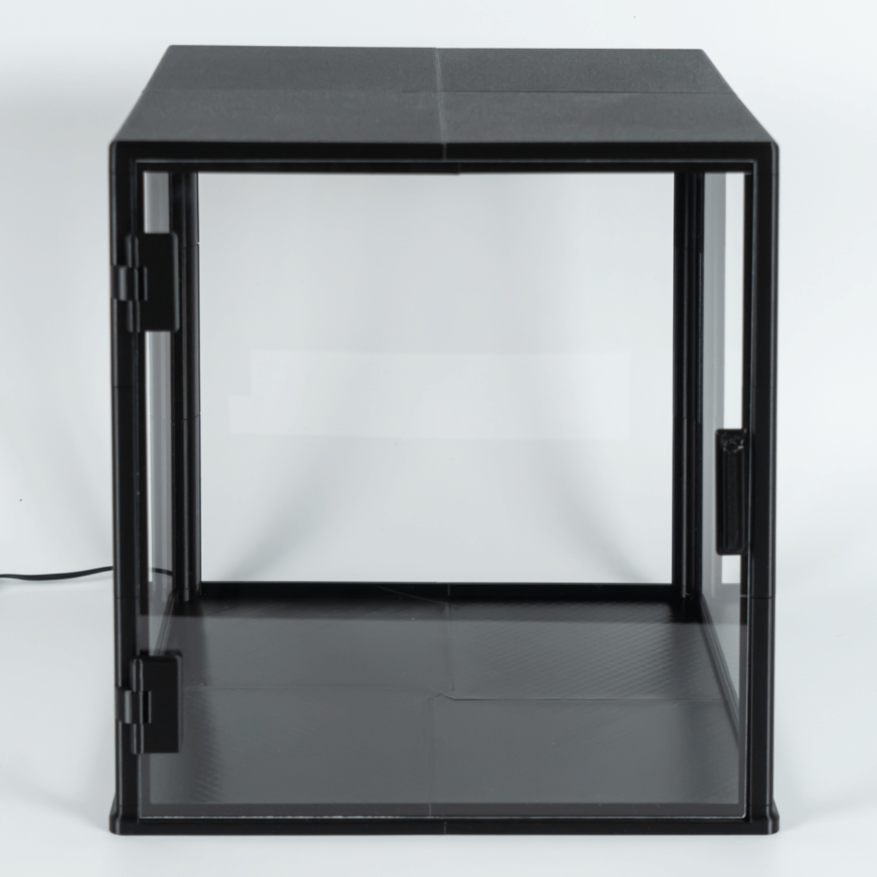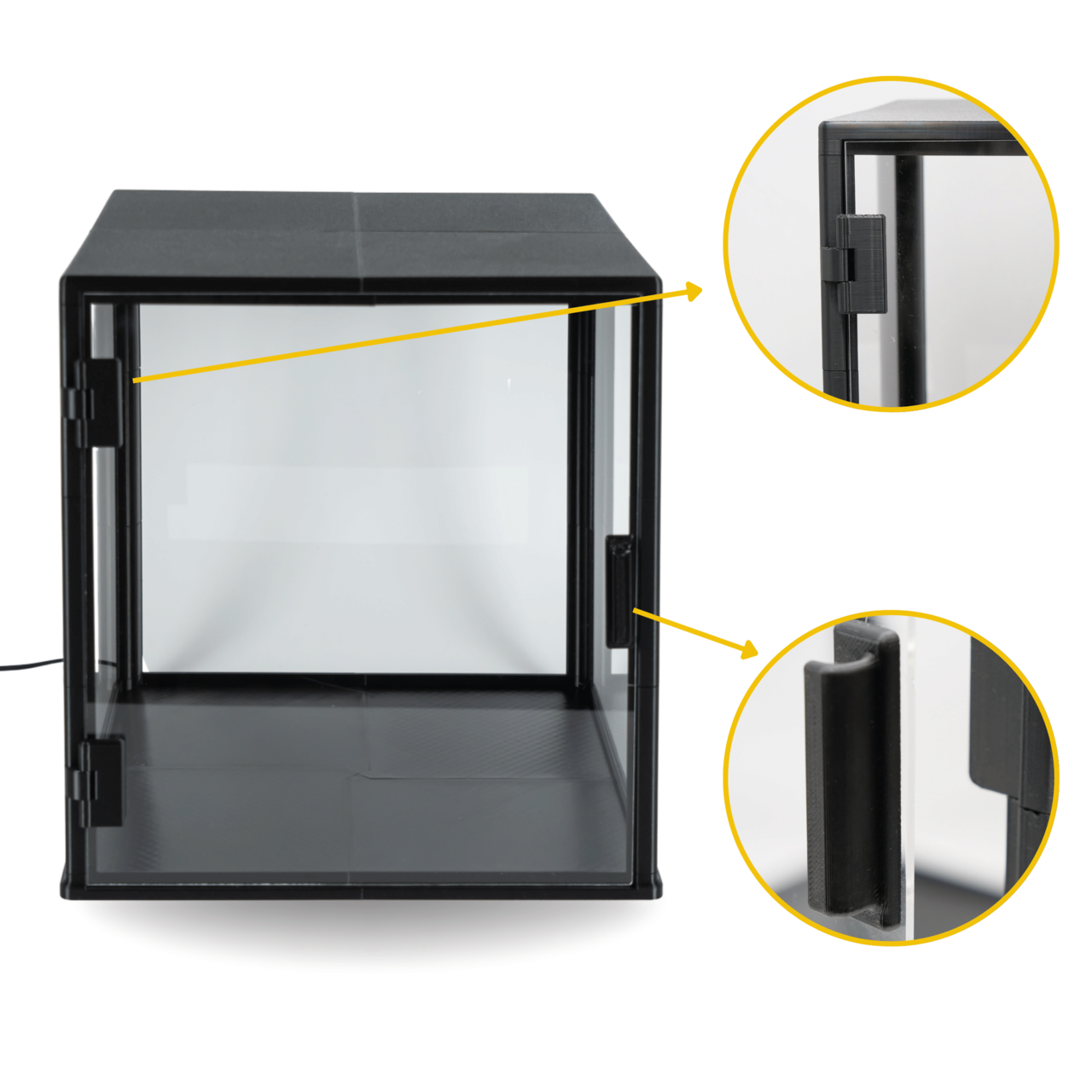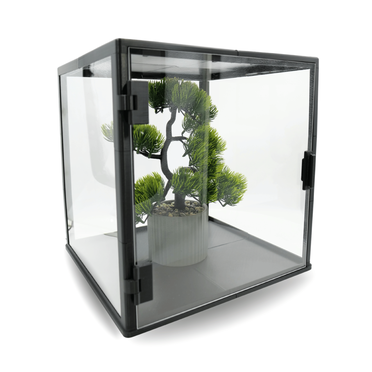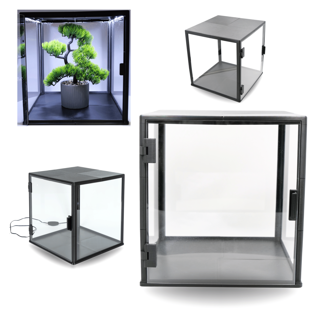 30×30 cm przestrzeni — idealne dla dużych eksponatówKwadratowa konstrukcja o wymiarach 300×300×300 mm zapewnia bardzo dużo miejsca, dzięki czemu gablota sprawdzi się przy: