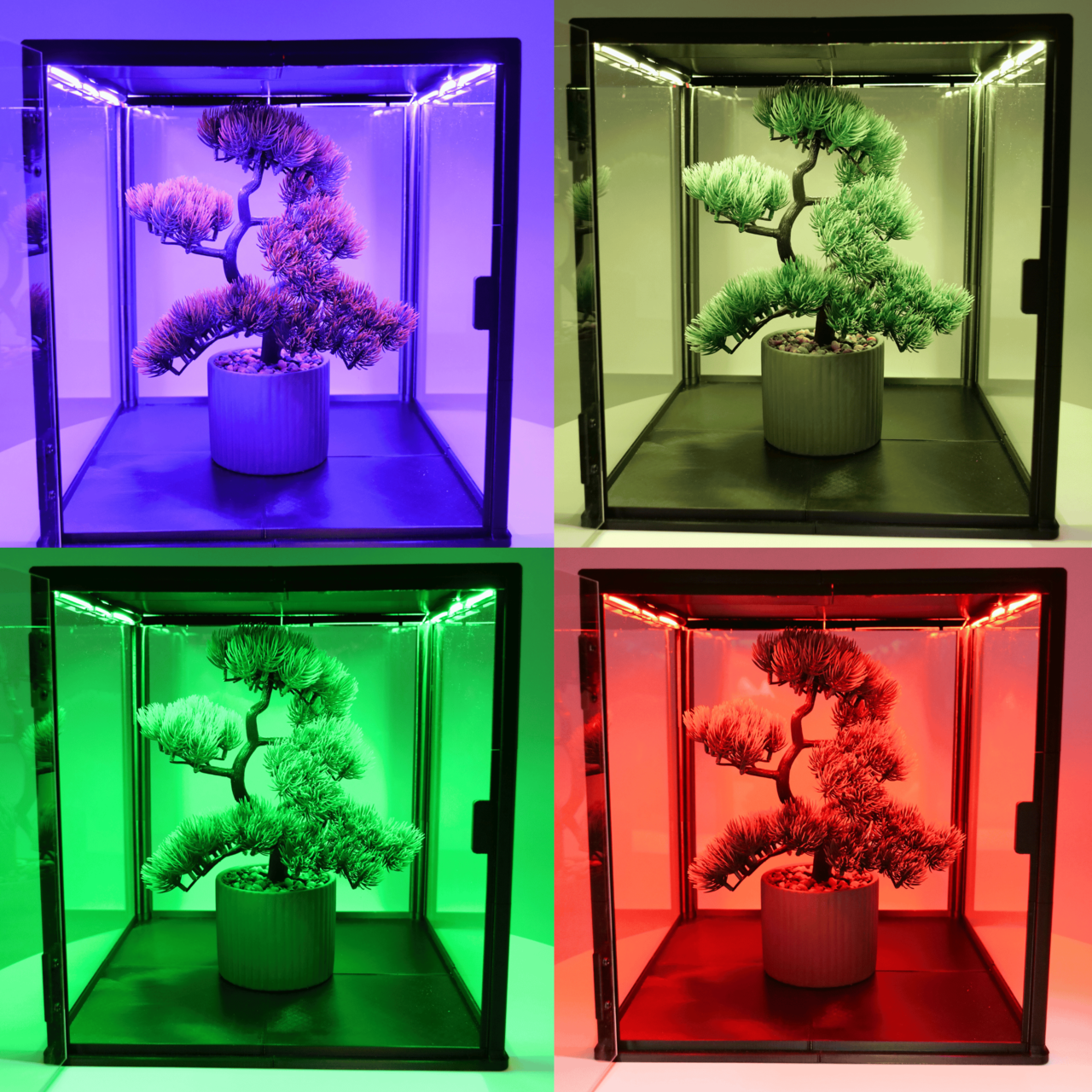 Efektowne podświetlenie LED — ekspozycja na poziomie muzealnymWitryna wyposażona jest w mocne, gęsto rozmieszczone diody LED, które równomiernie oświetlają cały obszar 30×30 cm.