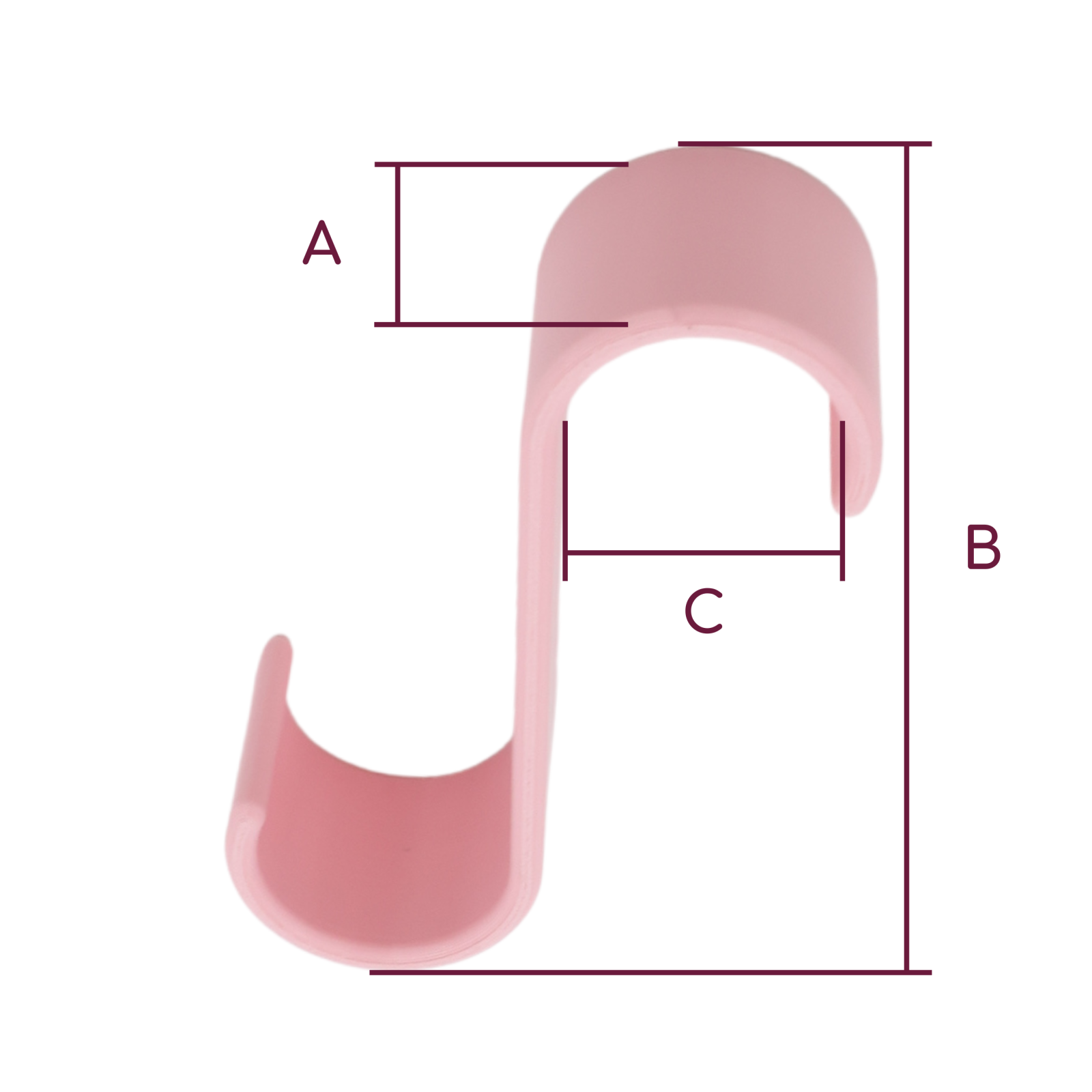 Stylowy wieszak / haczyk w kolorze różowym – idealny na kaloryfer łazienkowy. Wymiary wieszaków: Szerokość (A): 2 cm Długość (B): 7,5 cm Haczyk okrągły (C): 2 cm Wieszaki pasują na standardowe okrągłe grzejniki/kaloryfery łazienkowe.