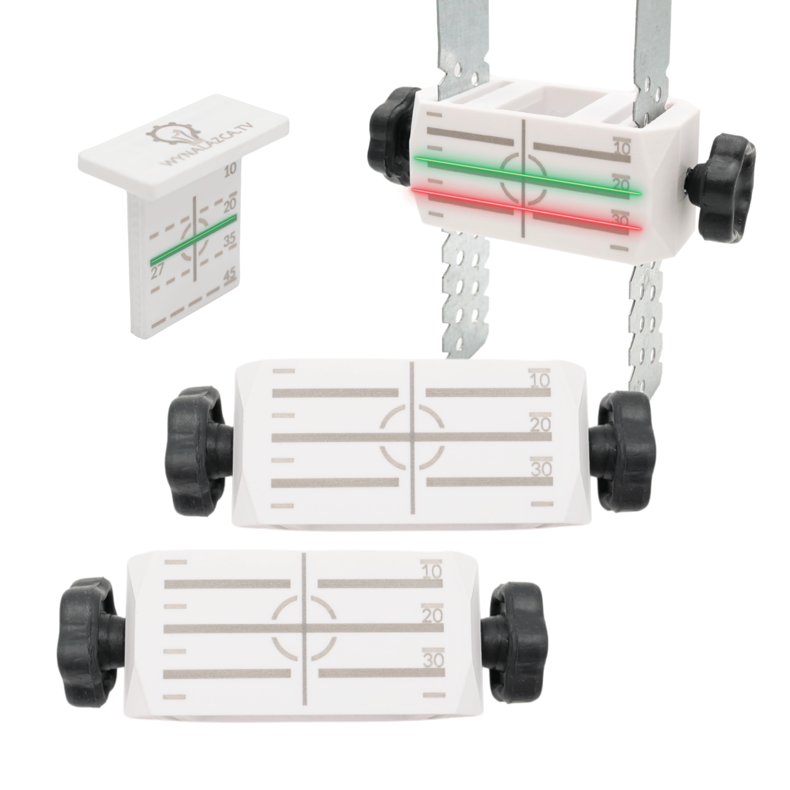 Specyfikacja: 2 sztuki uchwytów do poziomowania 1 sztuka znacznika na magnes Dwustronna podziałka Celownik poziomy i pionowy Ciemna podziałka i liczby Kolor biały Mocne magnesy Wykonany z lekkiego tworzywa