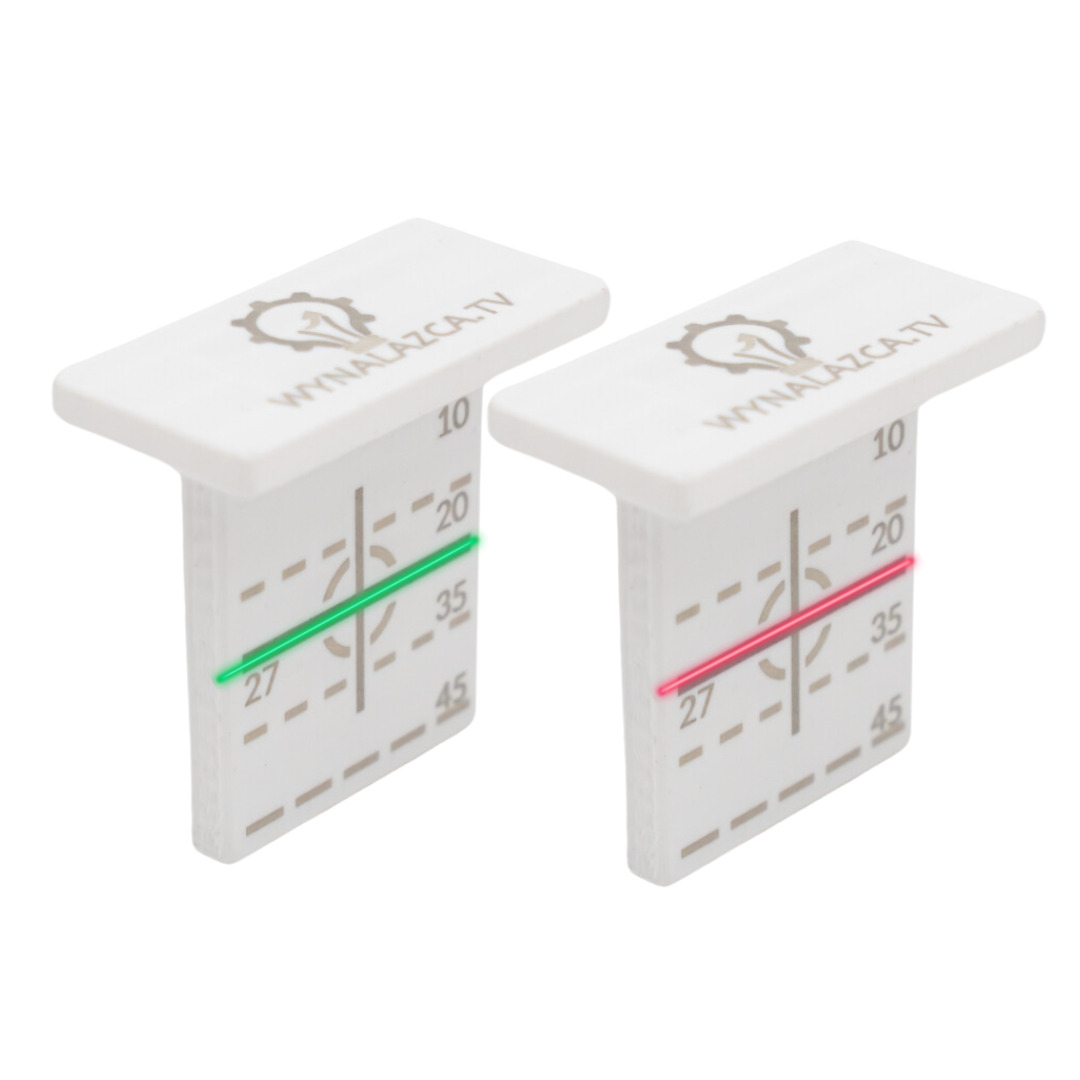 - Na środku została umieszczona dodatkowa pionowa podziałka oraz okręgu ułatwiające użycie znacznika w pionie i poziomie