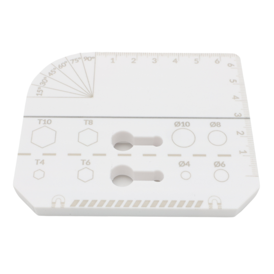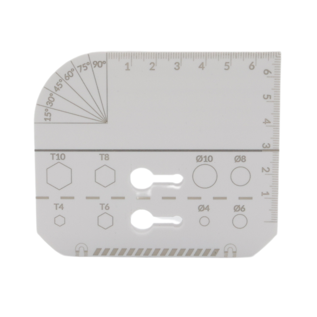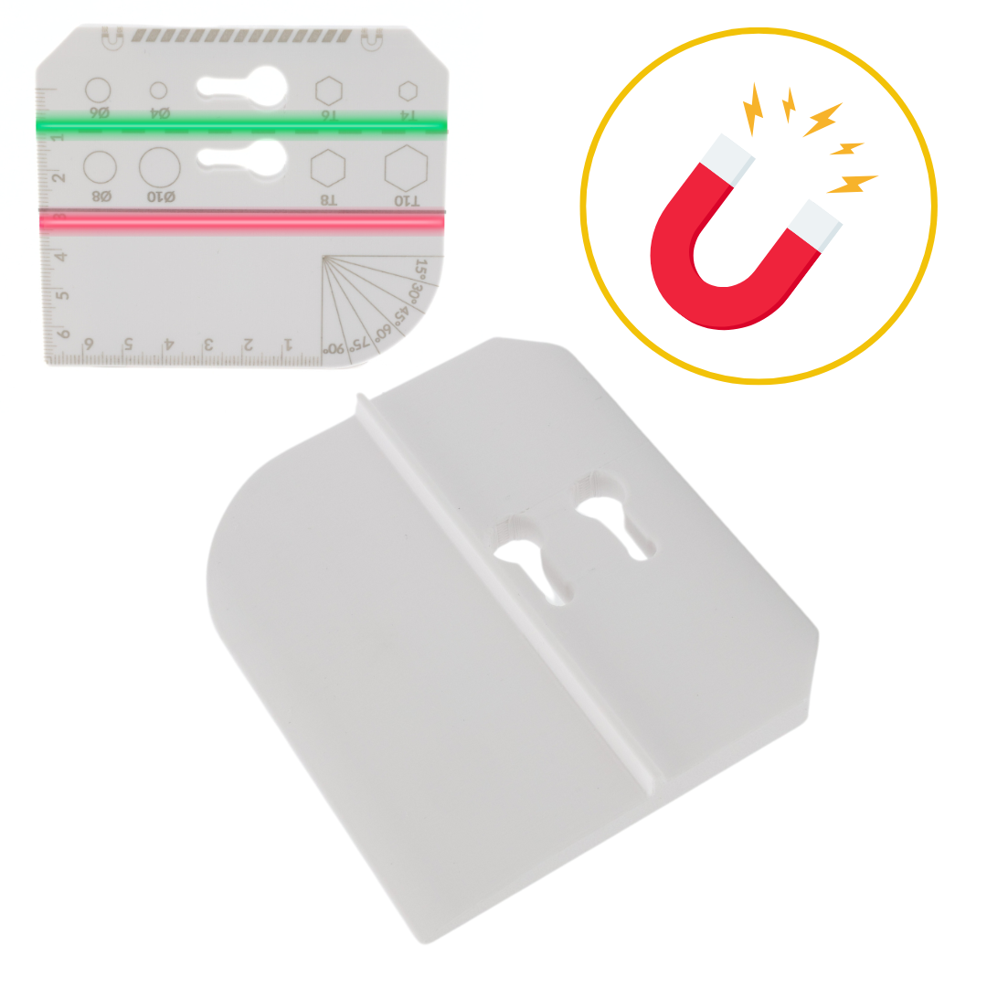 Narzędzie magnetyczne do płyt zawiera również mini linijkę z miarką rozpoczynającą się od samej krawędzi oraz kątomierz, co czyni je wszechstronnym i praktycznym w różnych zastosowaniach.