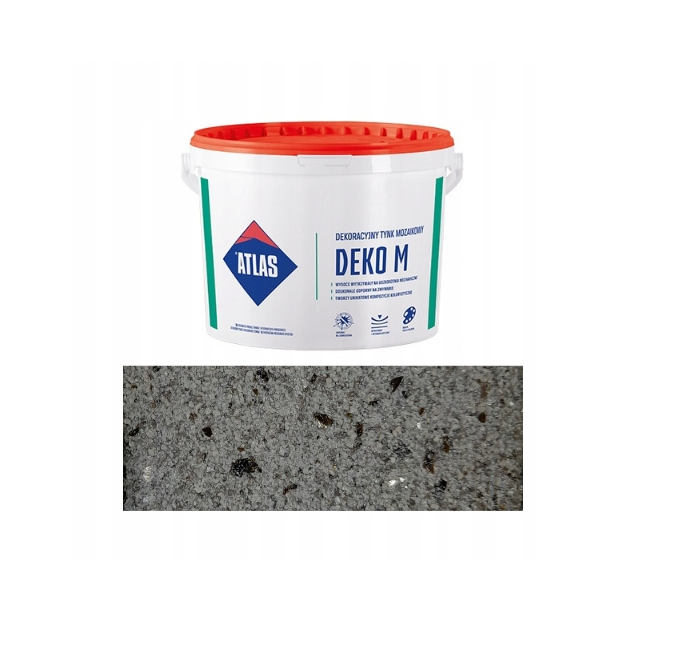 Dekoracyjny tynk mozaikowy ATLAS DEKO M to cienkowarstwowa wyprawa tynkarska przeznaczona do estetycznego i trwałego wykończenia zarówno elewacji, jak i wnętrz. Produkt składa się z nowoczesnej bazy akrylowej z dodatkami hydrofobizującymi oraz specjalnie dobranych kruszyw kwarcowych barwionych. Dzięki czemu tworzy efekt naturalnej mozaiki o wysokiej odporności na zmywanie, zabrudzenia i uszkodzenia mechaniczne. Tynk jest odporny na działanie warunków atmosferycznych i promieniowanie UV oraz kompensuje naprężenia termiczne, co sprawdza się w systemach ociepleń i na fasadach budynków.